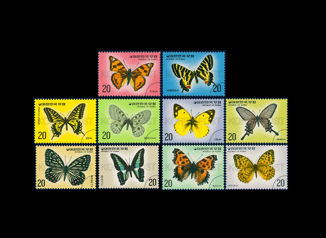 [기념우표] 1976 나비시리즈 우표 10종 完