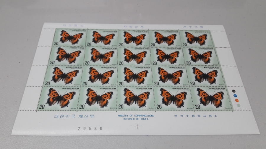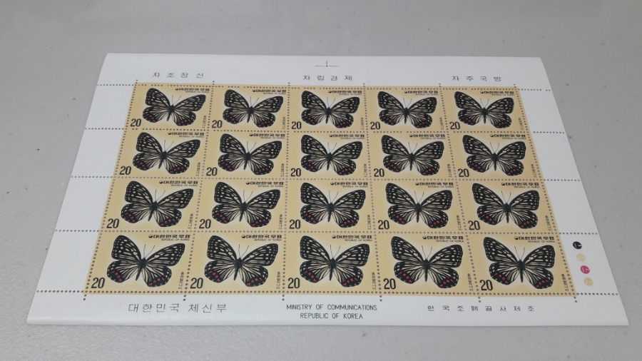 1976년 나비시리즈 제4집 (홍점알락나비) 기념 우표 전지 / STAMP / 한국조폐공사 / BUTTERFLY