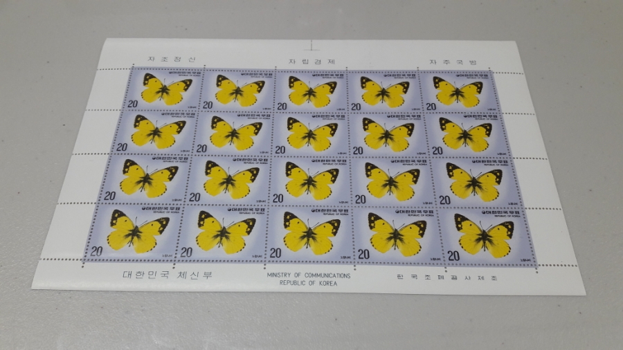 1976년 나비시리즈 제3집 (노랑나비) 기념 우표 전지 / STAMP / 한국조폐공사 / BUTTERFLY