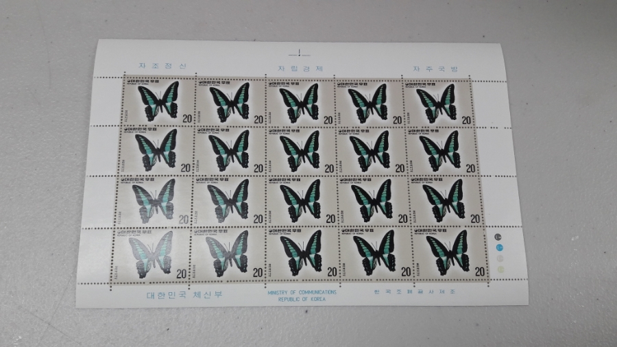 1976년 나비시리즈 제4집 (청띠 제비나비) 기념 우표 전지 / STAMP / 한국조폐공사 / BUTTERFLY